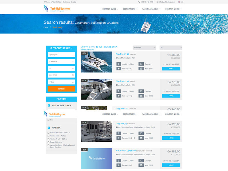 - Real-time BOOKING system with database of complete nautical offer, with availabilities, prices, agency discounts, and more
