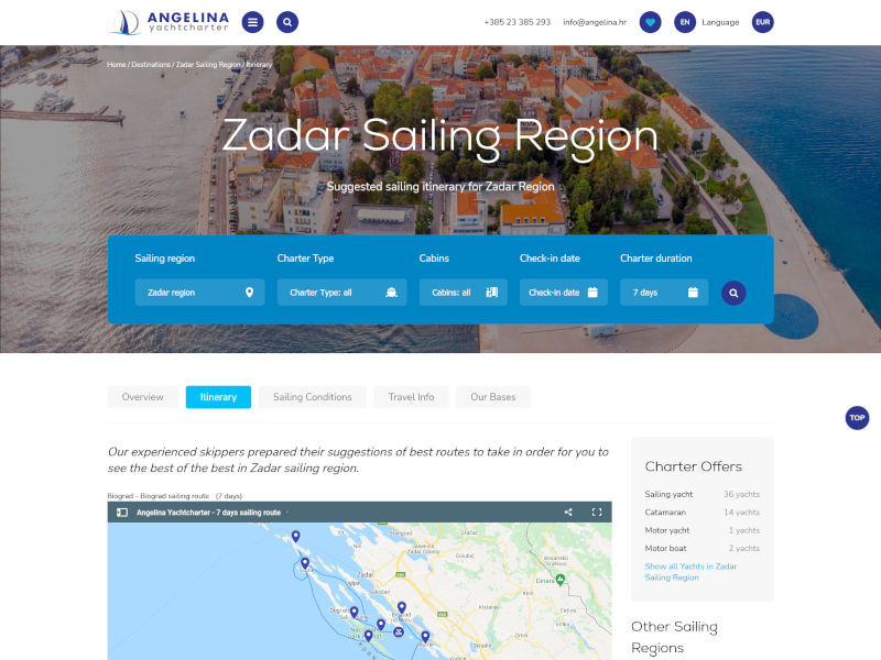 - Sistema de RESERVAS en tiempo real con base de datos de la flota de Angelina Yachtcharter, con disponibilidades, precios, descuentos y más.
